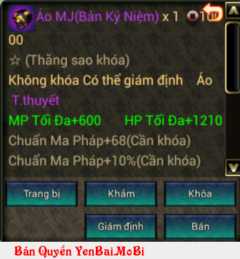 Dùng Cuộn giám định Cao cấp có thể giám định trang bị MJ cao cấp
